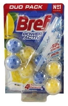Bref Power Aktiv ma 4-funkcyjną formułę, zapewniającą higienę, ochronę przed osadzaniem się kamienia, świeżość oraz czyszczącą pianę. Kompleksowe działanie sprawia, że toaleta jest higienicznie czysta i świeżo pachnie.