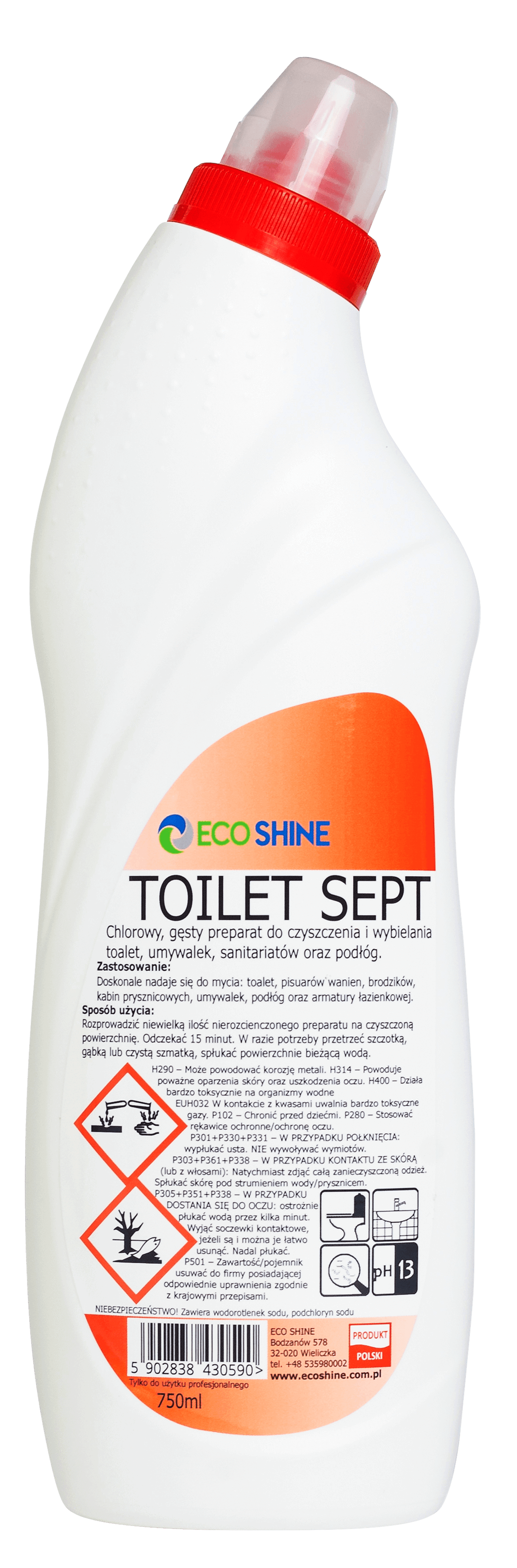 ECO SHINE TOILET SEPT - 750 ML - Żel do toalet myjąco-wybielający z aktywnym chlorem